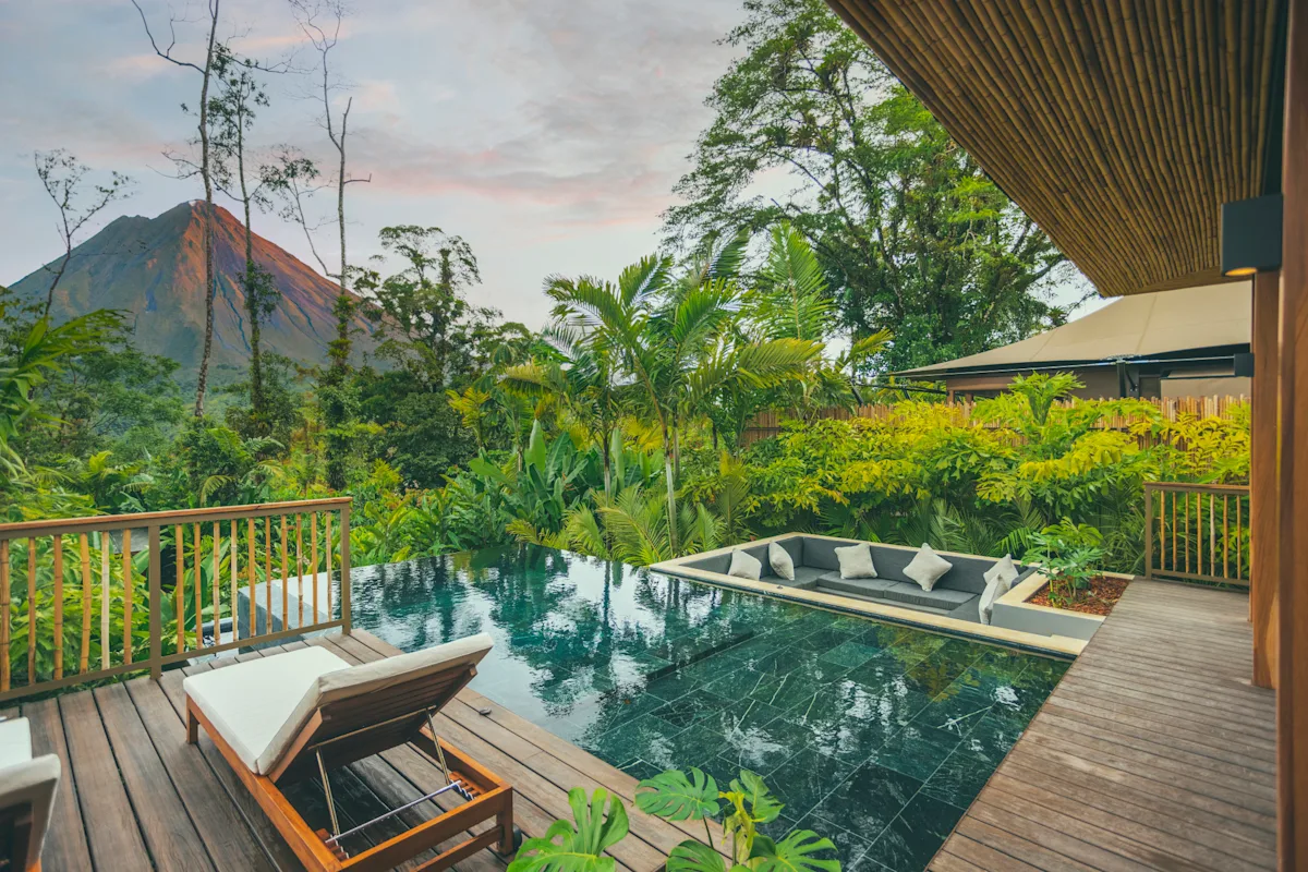 Nayara’s luxury tents are world-renowned for a reason. All of them are surrounded by the rainforest of Arenal National Park, a lush paradise filled with an exceptionally diverse array of flora and fauna. (The area is home to sloths, red-eyed tree frogs, orchids, cacao trees, monkeys and countless birds.)